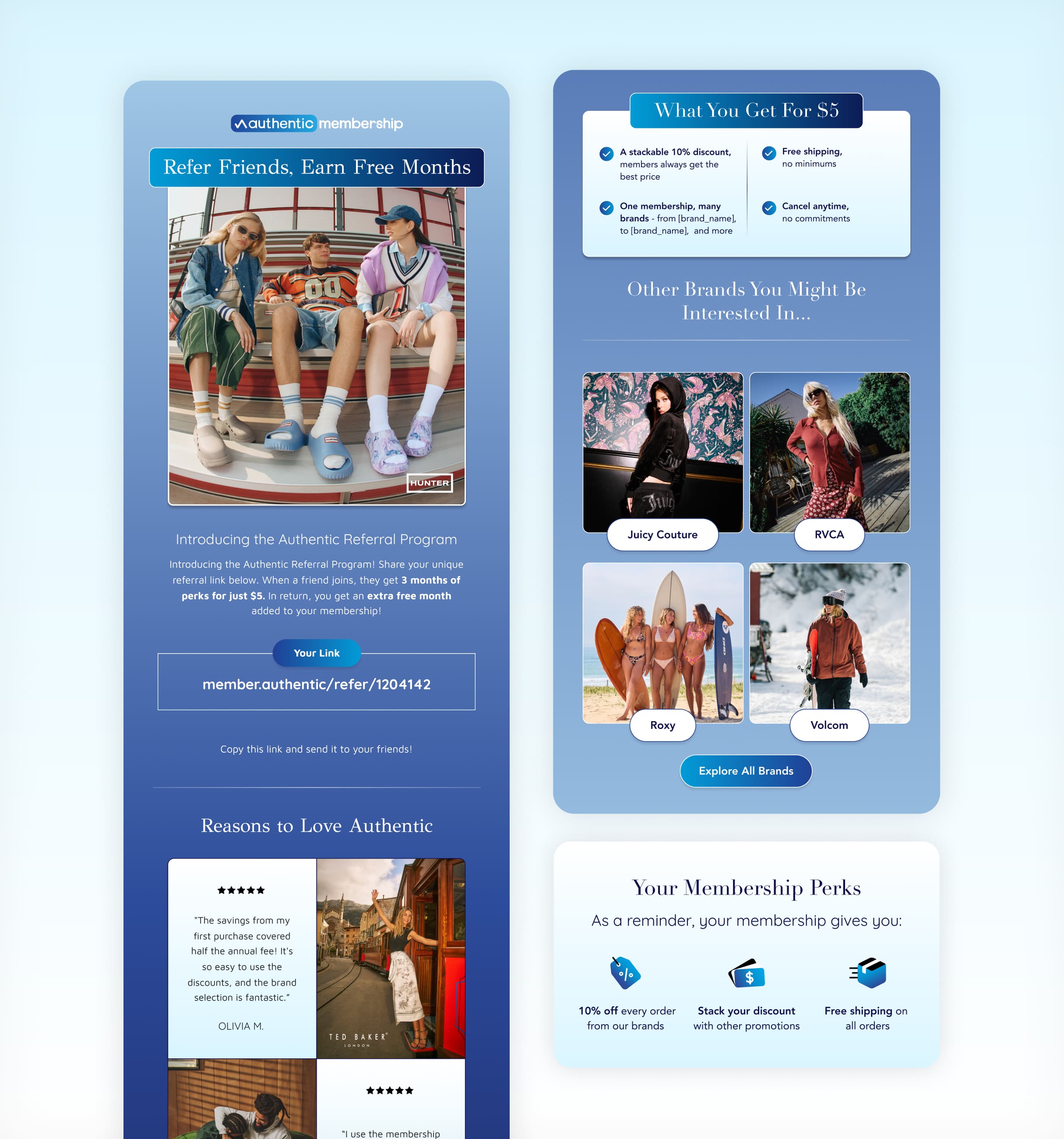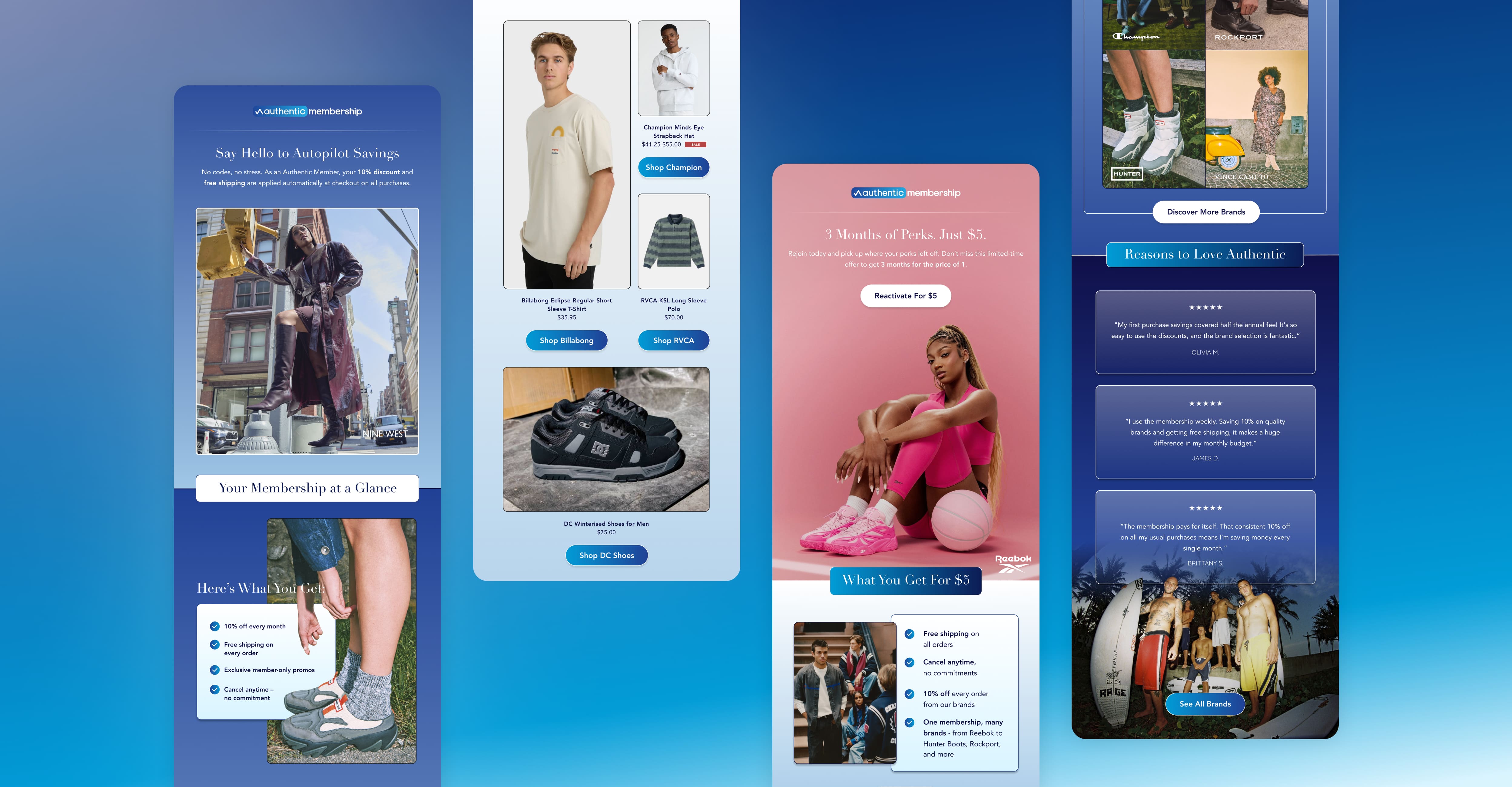 We executed a comprehensive rebrand and digital rollout for the Authentic Membership program, a cross-brand loyalty initiative spanning iconic labels like Reebok, Champion, Quiksilver, Billabong and more. Our team designed the central membership landing page and developed a high-volume creative suite of paid social assets to drive acquisition. To maximize retention, we built a robust email marketing infrastructure, including automated welcome flows, re-engagement tracks, win-back sequences, and post-purchase optimization.